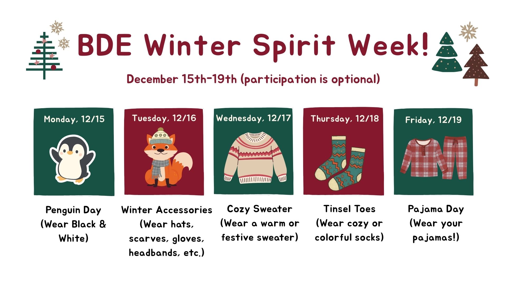As December settles in and the chilly weather arrives, we want to remind families that students head outside for recess every day, rain or shine. Please be sure your child comes to school dressed for the elements. Warm coats, hats, gloves, and waterproof shoes help keep students comfortable so they can enjoy their time outdoors.