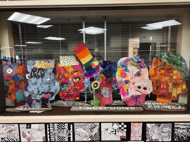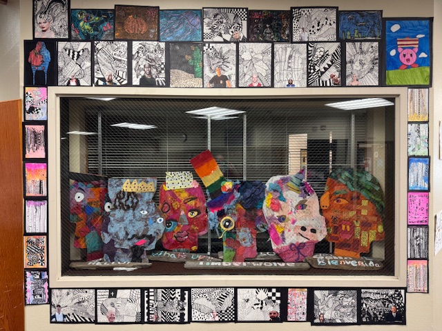 Mrs. Demerjian's Art classes have been busy, learning about Picasso and creating art work in his style. Some of their masterpieces are on display in the hallway. |