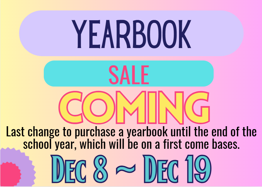- December 11: Yearbook Meeting, 2:35-3:45 in Room C6