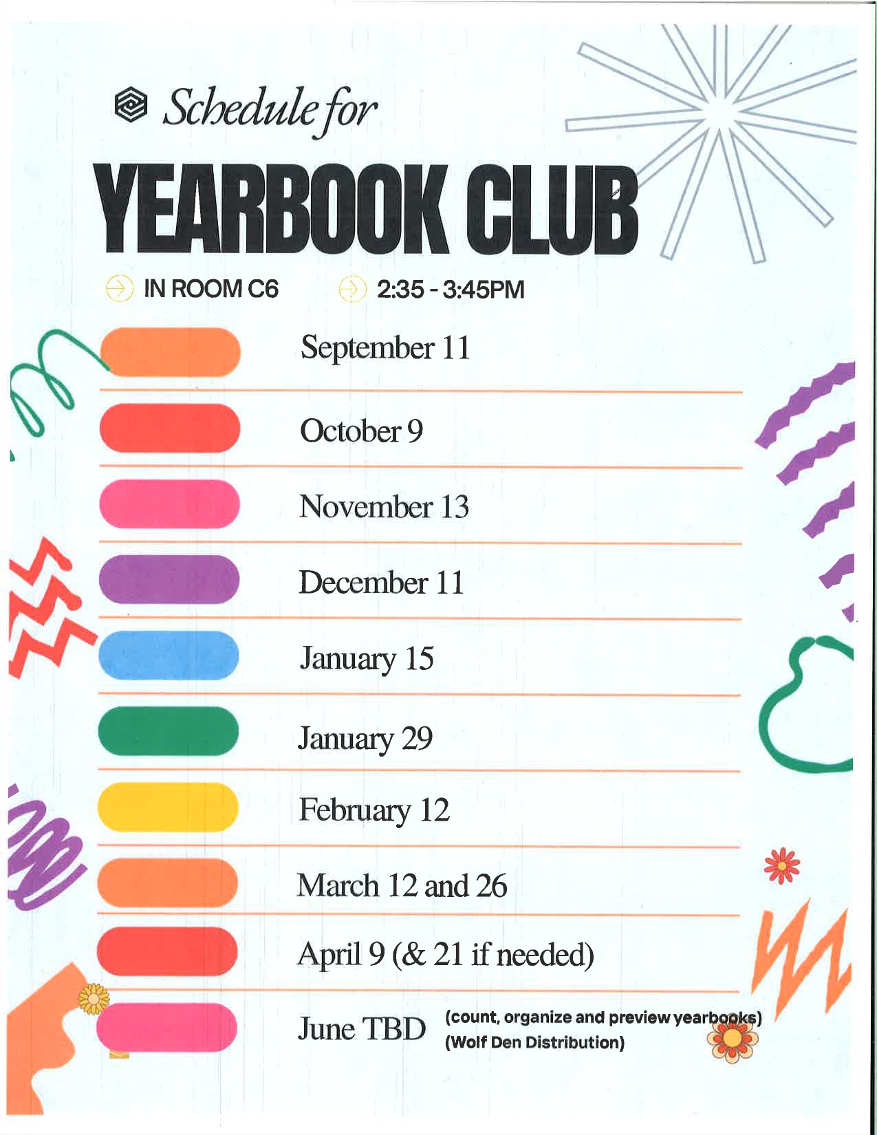 April 9: Yearbook Meeting 2:35-3:45 in Room C6