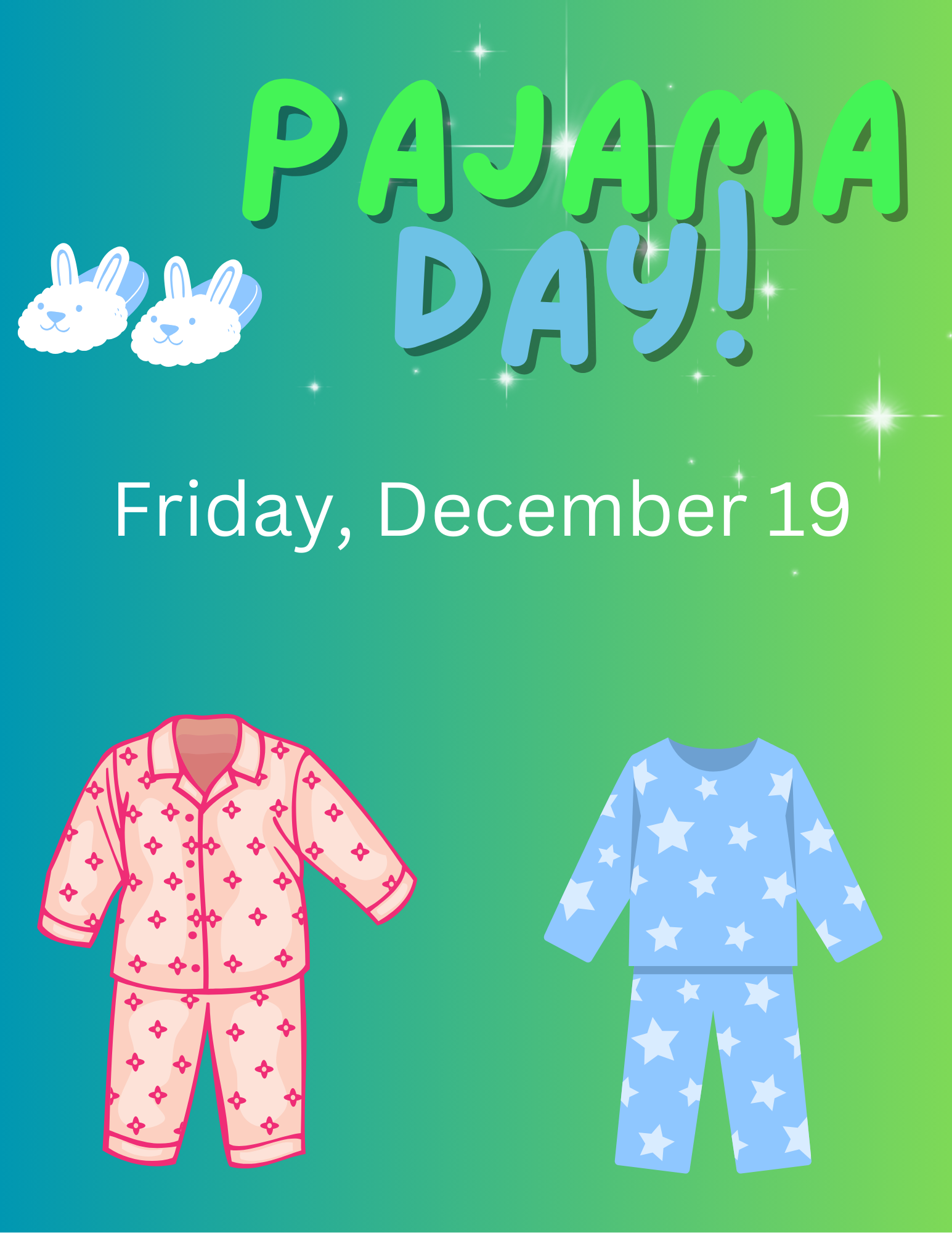 PJs. Slippers. Robe. It's an all school pajama day, Friday, December 19th.