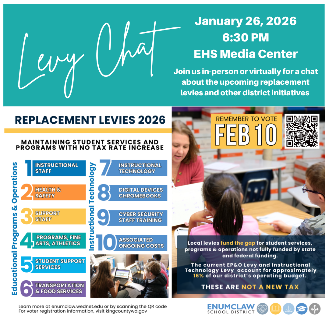 Enumclaw School District does not discriminate in employment, programs, or activities on the basis of age, sex, race, ethnicity, creed, religion, color, national origin, honorably discharged veteran or military status, sexual orientation, gender expression, gender identity, homelessness, immigration or citizenship status, marital status, the presence of any sensory, mental, or physical disability, neurodivergence, or the use of a trained dog guide or service animal by a person with a disability. The following employees have been designated to handle questions and complaints of alleged discrimination: