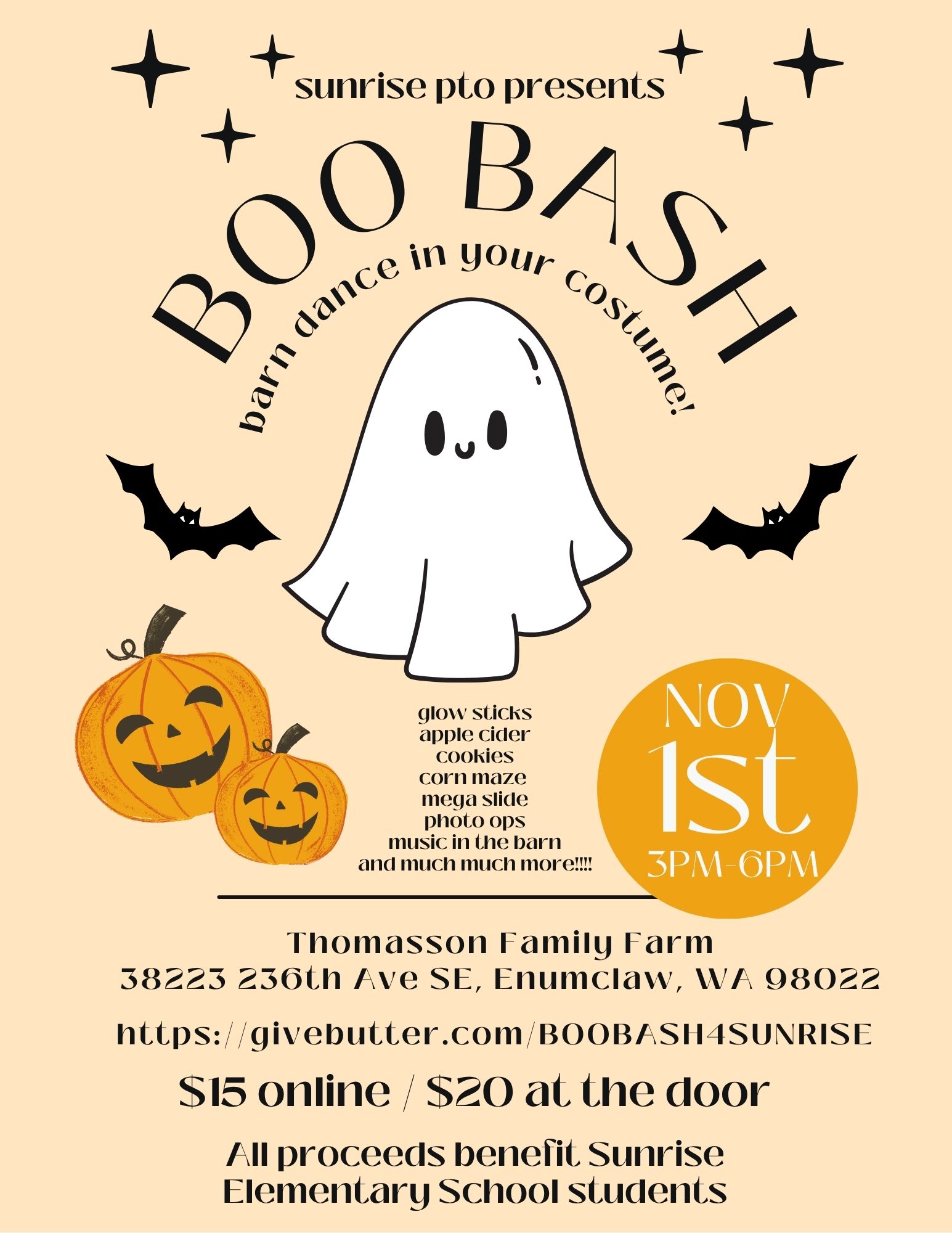 Join us tomorrow, Saturday, November 1st at Thomasson Family Farm for our first ever Boo Bash! All proceeds go to the Surnise PTO, which then goes back to all of our students. |