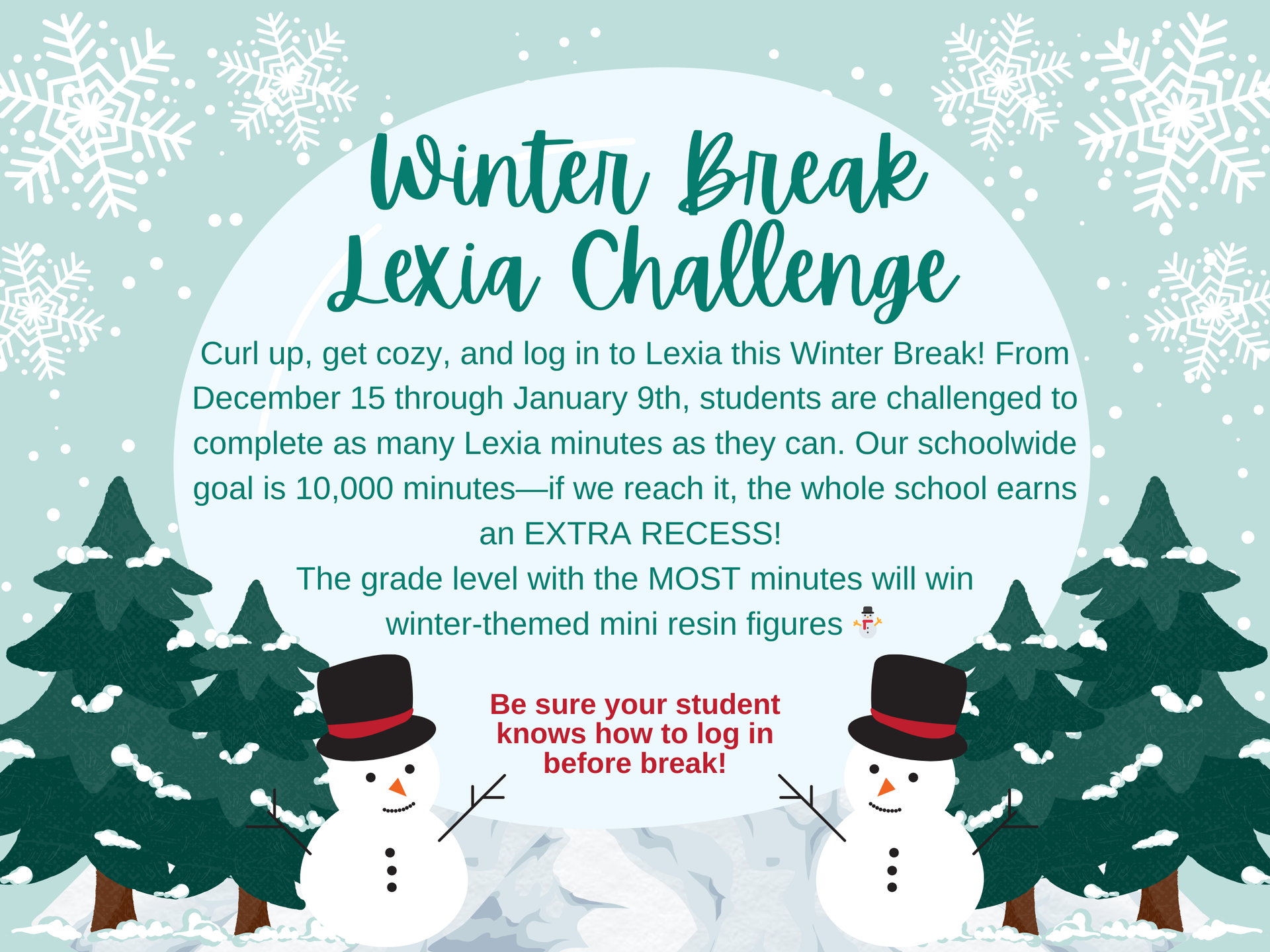 Monday, December 22nd thru Friday, January 2nd - Winter Break