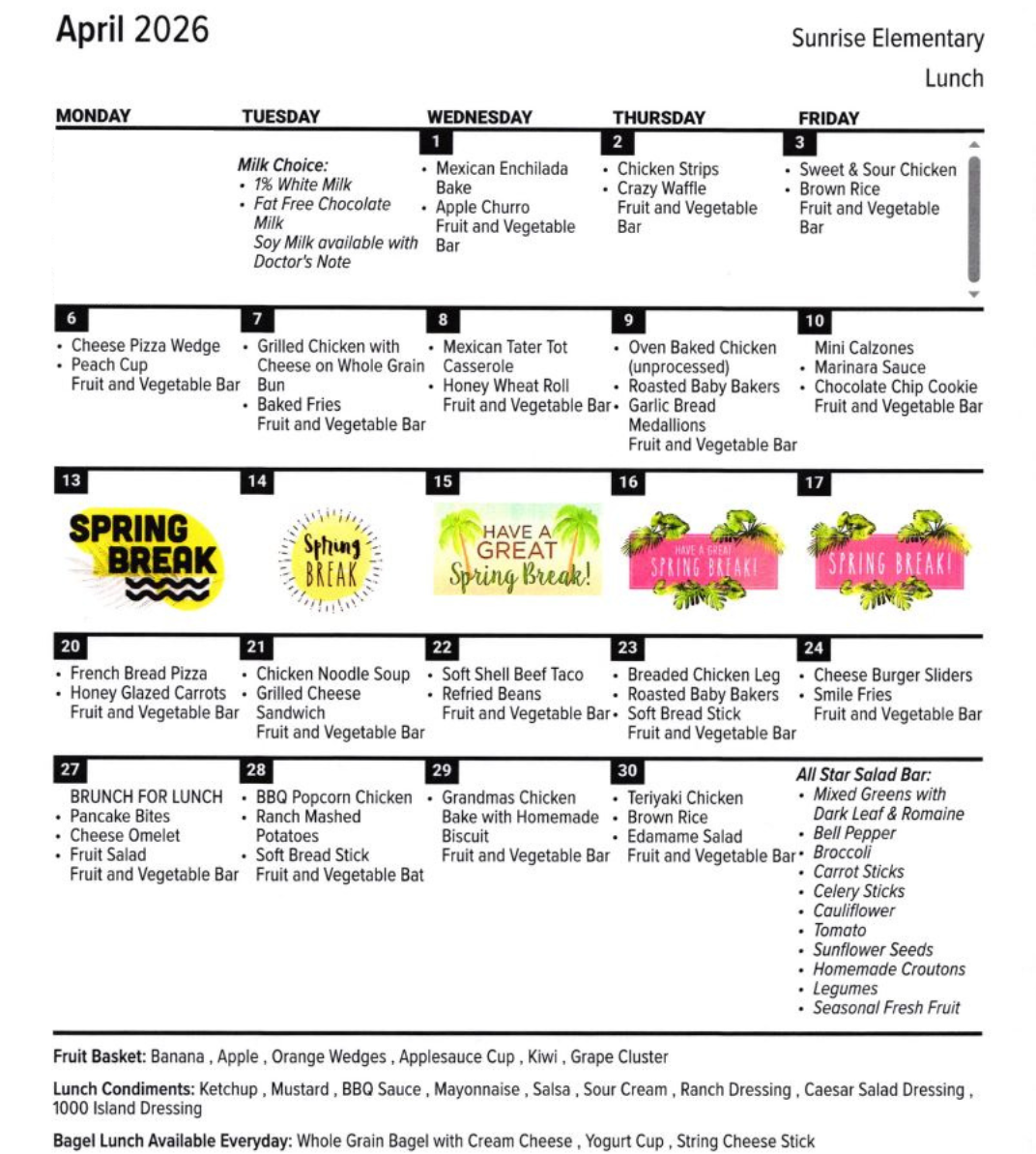 Monday, April 13th thru Friday, April 17th - Spring Break