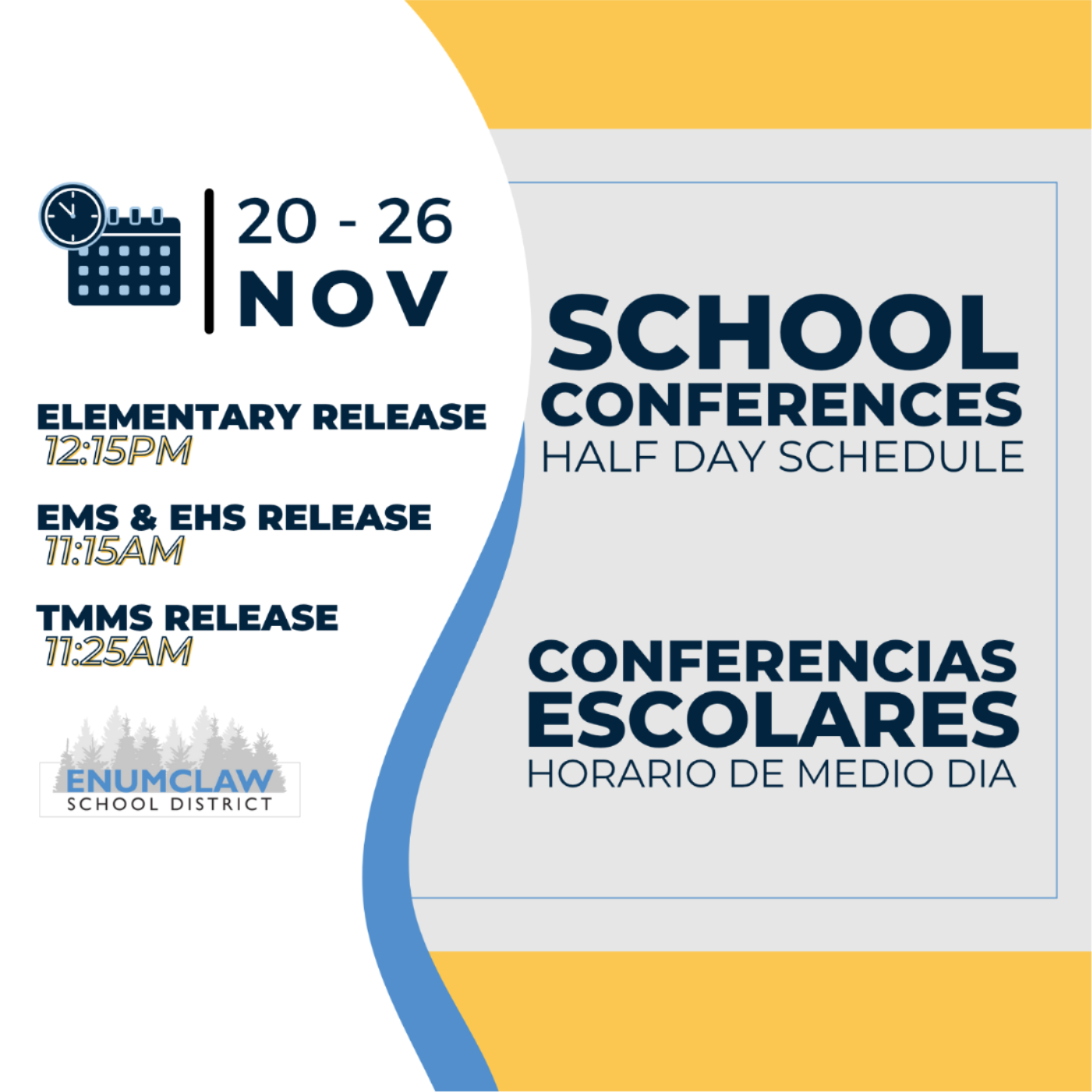 25th- Half day release @ 11:25 a.m. Conferences