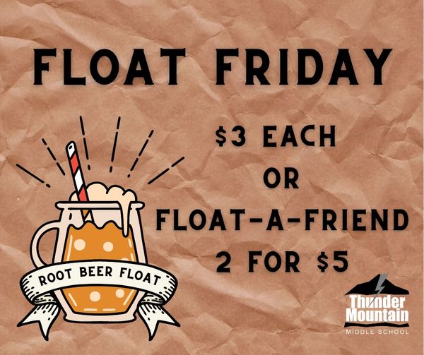 | Friday, PTSO will be here selling Root Beer Floats during both lunches. Students need to have cash, they cannot use money from their lunch account. |