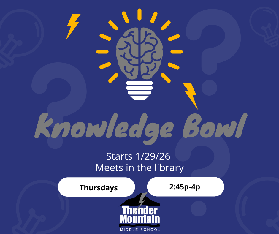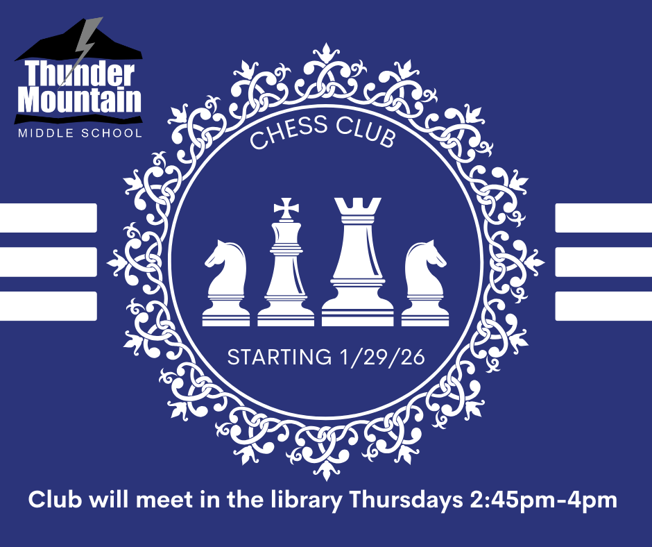 Athletic Registration for 3rd Season Sport is still open! The last day to register is 1/15/26. Monday, January 12th will be the first day of practice. Practice is from 2:50 - 4:50 with a parent pickup by 5:00 Monday - Friday. All forms can be found on our Thunder Mountain website under the Enumclaw School District website. Click menu, scroll down to Athletics, click Athletic Registration and follow the steps from there. https://tmms.enumclaw.wednet.edu/o/tmms/page/athletics