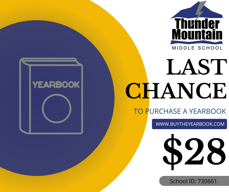 January 12-19 is the last yearbook sale for this school year. Yearbooks can be purchased online only for $28.00 at www.buytheyearbook.com school ID: 730661.