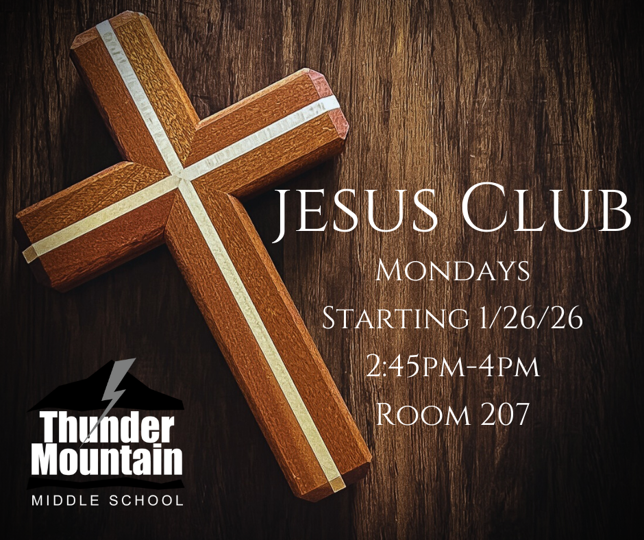 Jesus Club meets on Mondays, 2:45-4:00 in room 207, starting January 26th. You’ll spend time talking about faith, building friendships, and encouraging positivity and kindness at school. Everyone is welcome! See Mrs. Shatswell if you have any questions.