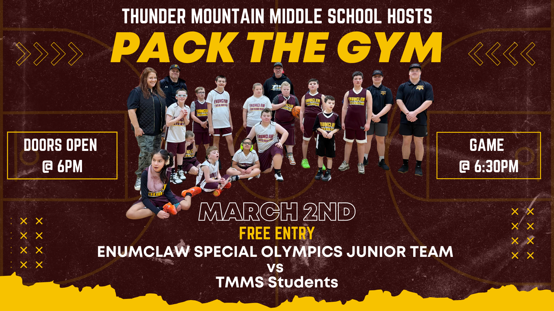 Join us Monday, March 2nd @ 6pm at TMMS to “Pack the Gym” and support our Enumclaw Specialized Recreation athletes!