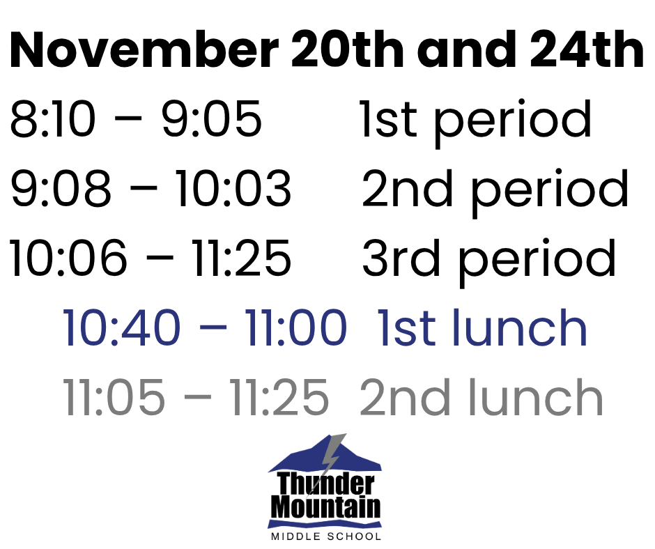 24th- Book Fair 7:45 a.m. - 12:30 p.m. (students will visit during English classes) 24th- Half day release @ 11:25 a.m. Conferences 25th- Half day release @ 11:25 a.m. Conferences 26th- Half day- release @ 11:25 27th- NO SCHOOL