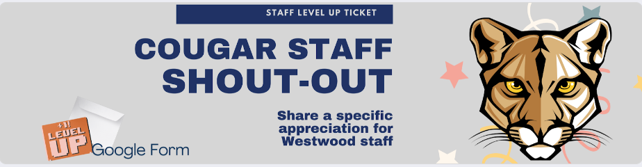 Share a quick appreciation of a Westwood staff member by following this link or by clicking on the graphic below. This appreciation will be shared with Mr. Meyer and the staff member. Appreciations and encouragement help us as we navigate each day! Thank you! |